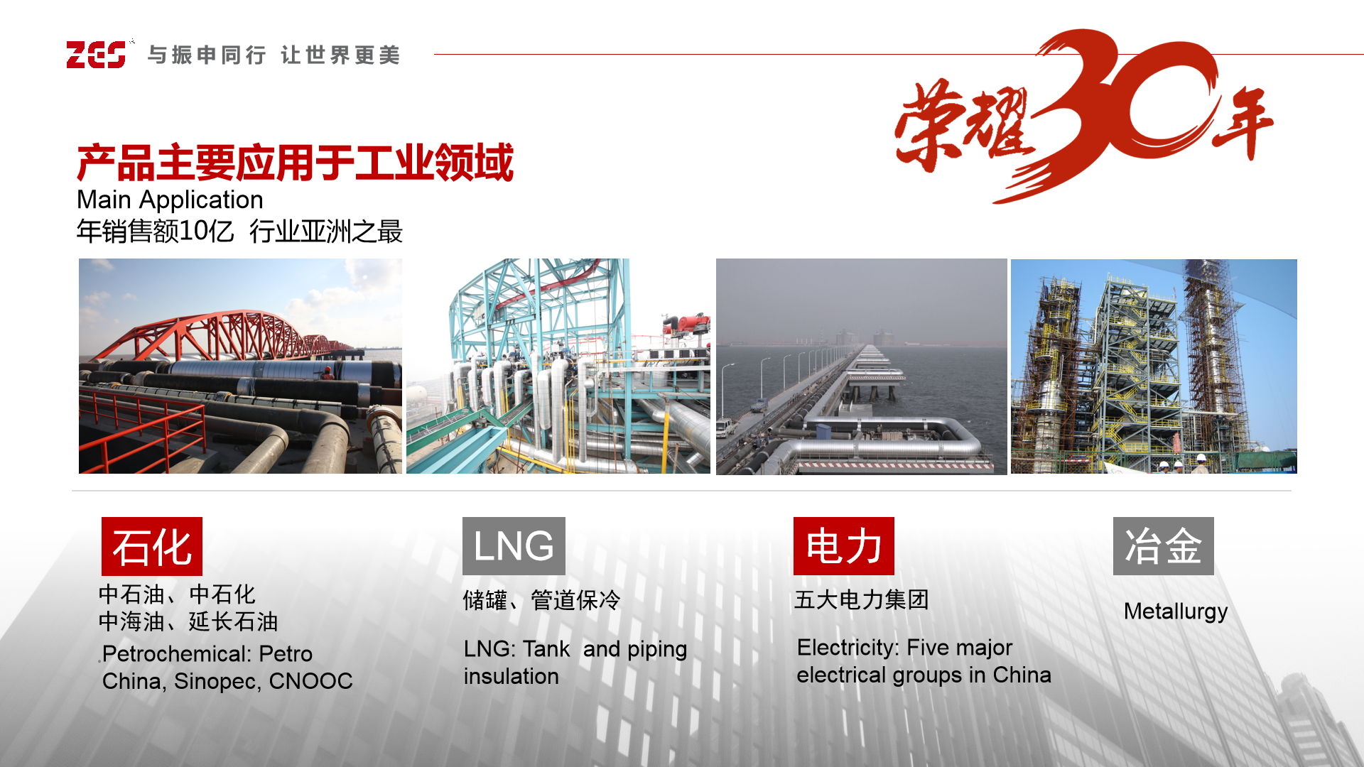 公司圍繞國家節能減排、綠色建筑、低碳經濟的基本國策和戰略方針,企業進行轉型升級和集成創新,自主研發的“振申”泡沫玻璃先進工藝和制造方法,使其成為防火性能A1級,防腐防水永久性的保溫隔熱材料,在節能環保領域大有前途,并且“振申“泡沫玻璃生產工藝采用廢玻璃回收的循環經濟模式,被列入《中國資源綜合利用技術政策大綱》推廣的資源節約型、環境友好型產品,是國務院《關于印發工業轉型升級規劃(2011-2015年)的通知》明確的“新材料”。“振申”泡沫玻璃以其在苛刻工況環境下保冷隔熱性能穩定,無毒無害、無污染,節能效果顯著的特點,在國民經濟建設和節能環保領域中發揮出無可替代的作用,為我國的戰略能源儲備、LNG儲罐及輸送管道、LNG船、石油化工設備裝置、空分裝置、火電脫硫減排、建筑結構圍護、地下工程設施等領域提供了彌足珍貴的節能環保產品,取得了巨大的社會經濟效益,對我國的節能環保事業有著深遠的意義。