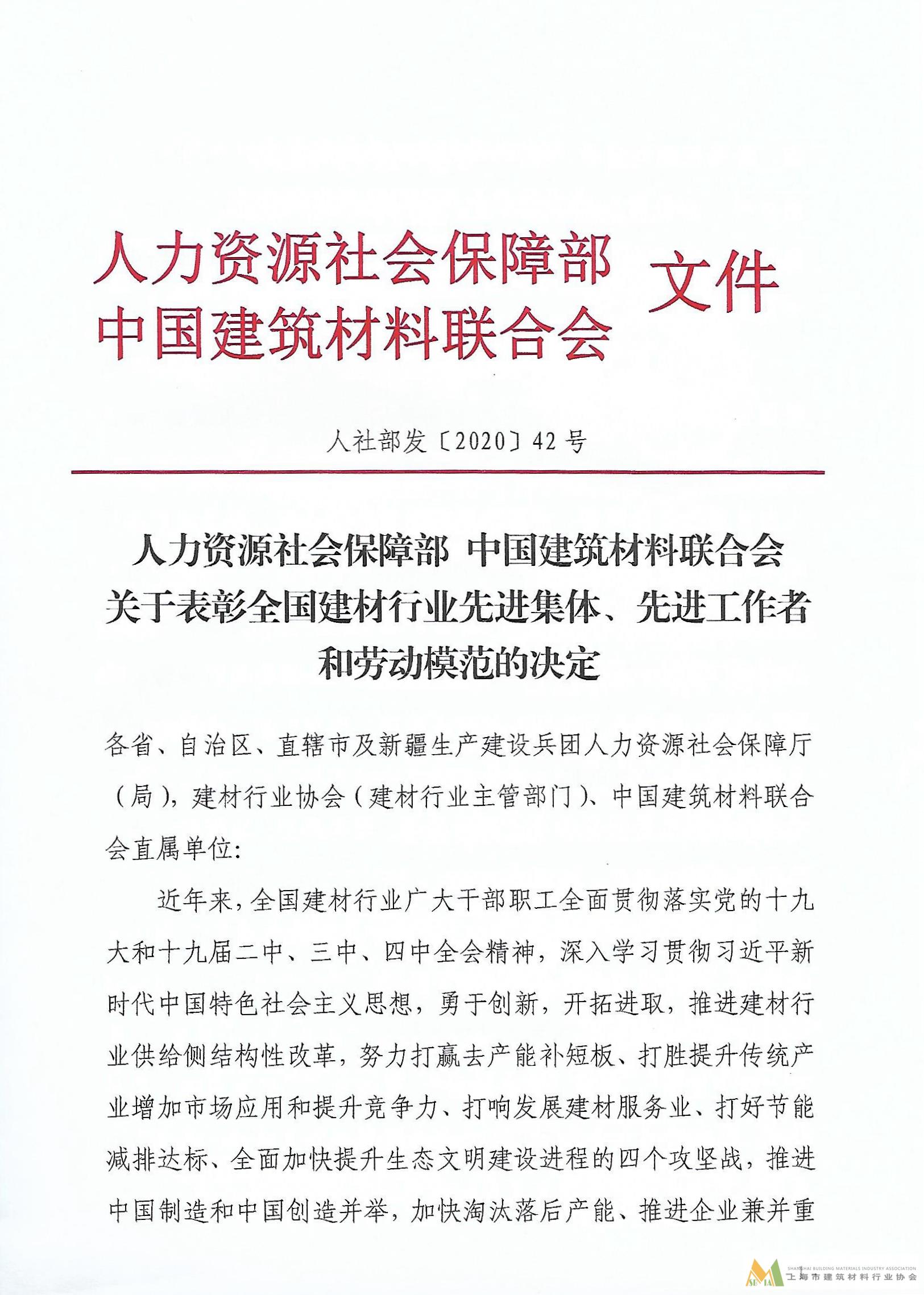人力資源社會保障部 中國建筑材料聯合會關于表彰全國建材行業先進集團、先進工作者和勞動模范的決定