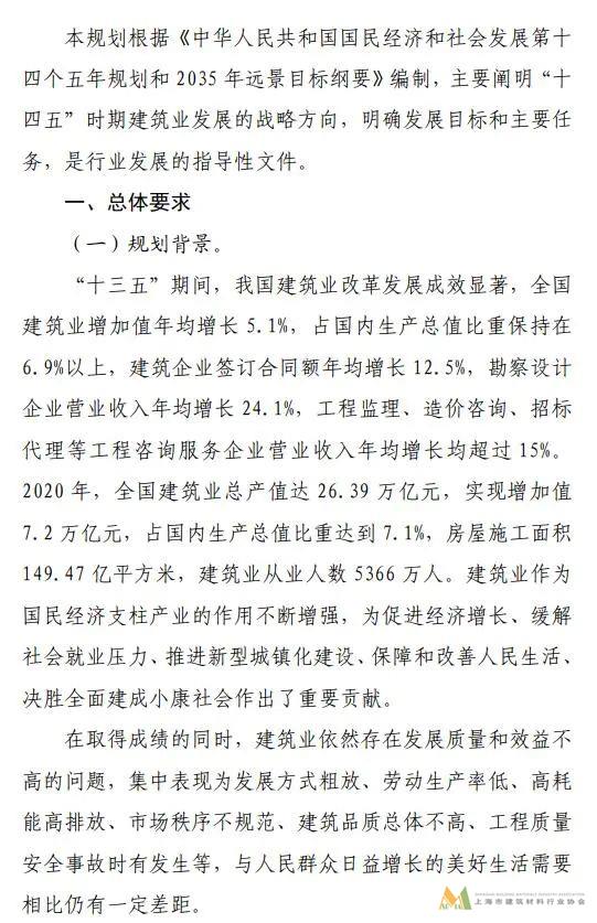 為指導(dǎo)和促進(jìn)“十四五”時(shí)期建筑業(yè)高質(zhì)量發(fā)展,根據(jù)《中華人民共和國(guó)國(guó)民經(jīng)濟(jì)和社會(huì)發(fā)展第十四個(gè)五年規(guī)劃和2035年遠(yuǎn)景目標(biāo)綱要》,住房和城鄉(xiāng)建設(shè)部近日印發(fā)《“十四五”建筑業(yè)發(fā)展規(guī)劃》。