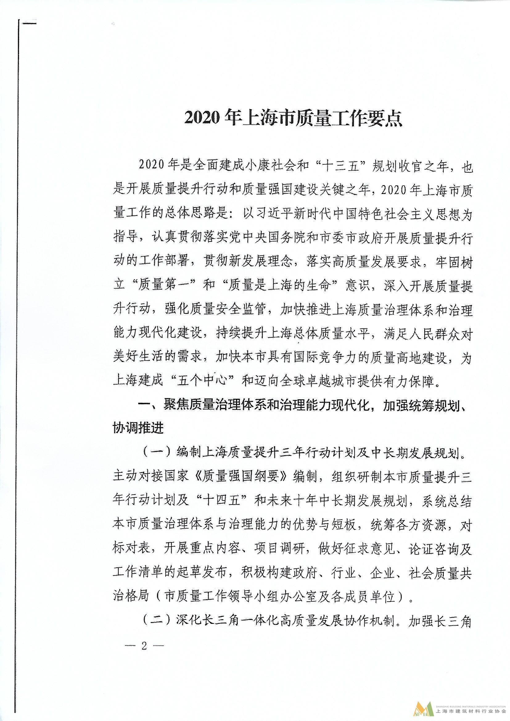 2020年上海市質量工作要點