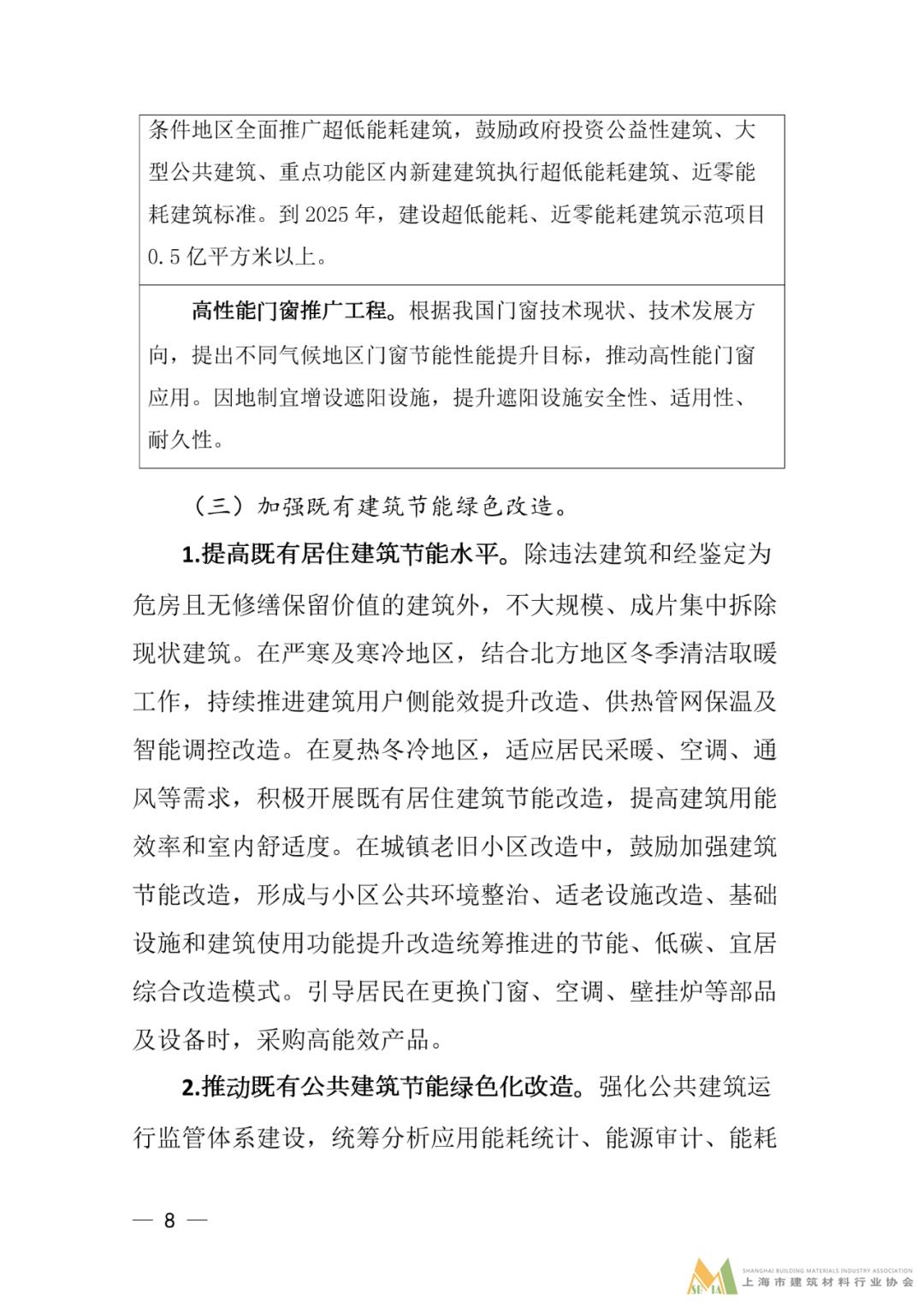 二、提高新建建筑節(jié)能水平。重點提高建筑門窗等關(guān)鍵部品節(jié)能性能要求,推廣地區(qū)適應(yīng)性強、防火等級高、保溫隔熱性能好的建筑保溫隔熱系統(tǒng)。推動政府投資公益性建筑和大型公共建筑提高節(jié)能標準,嚴格管控高耗能公共建筑建設(shè)。
