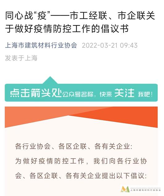 上下同欲者勝,風雨同舟者興。在這場疫情防控阻擊戰中,上海建材人眾志成城守滬抗疫,用實際行動踐行了責任與擔當?,F在進入企業生產經營和疫情防控常態化階段,讓我們時時關注市、區、街鎮防疫要求及疫情變化情況,及時應對應變,守望相助,共克時艱迎“雙復”,把疫情耽誤的時間搶回來,堅決打贏疫情防控和復工復產攻堅戰!