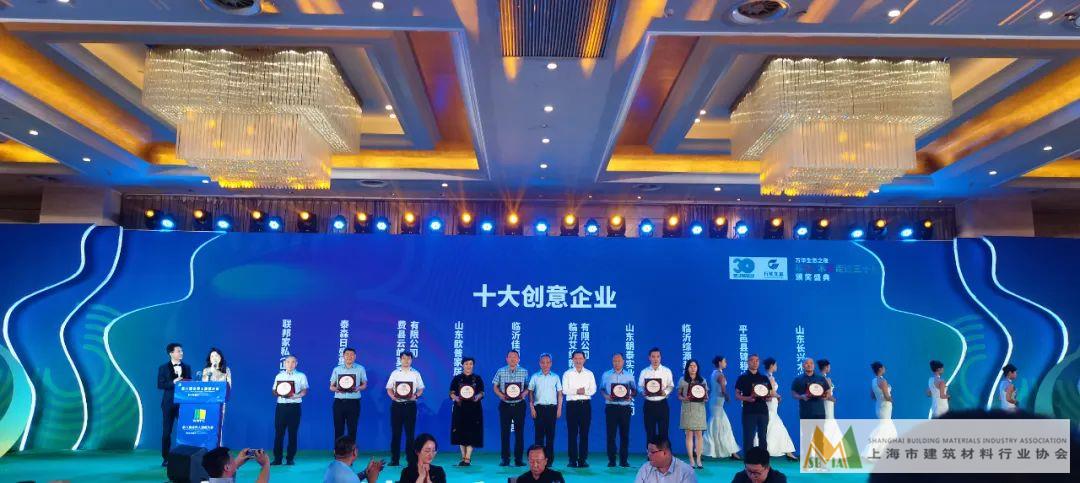 歐普家居董事長(zhǎng)姜自蘭女士應(yīng)邀參加晚宴并代表公司獲頒臨沂·木業(yè)走過(guò)30年“十大創(chuàng)意”企業(yè)獎(jiǎng)牌。